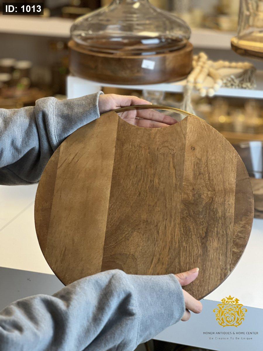 قاعدة تقديم مدورة مع يد معدن خشب