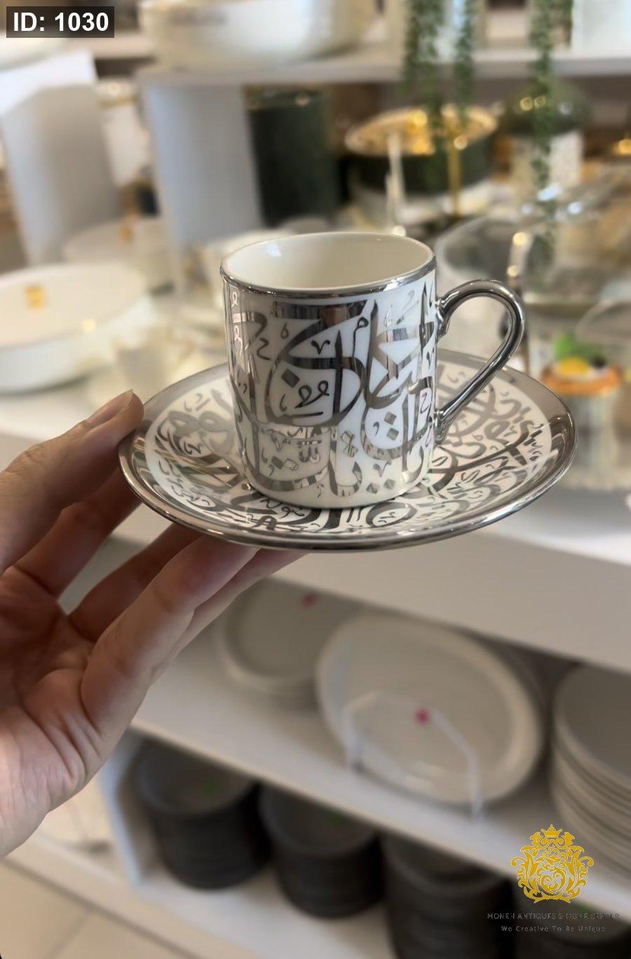 فناجين قهوة كتابة فضي على 12