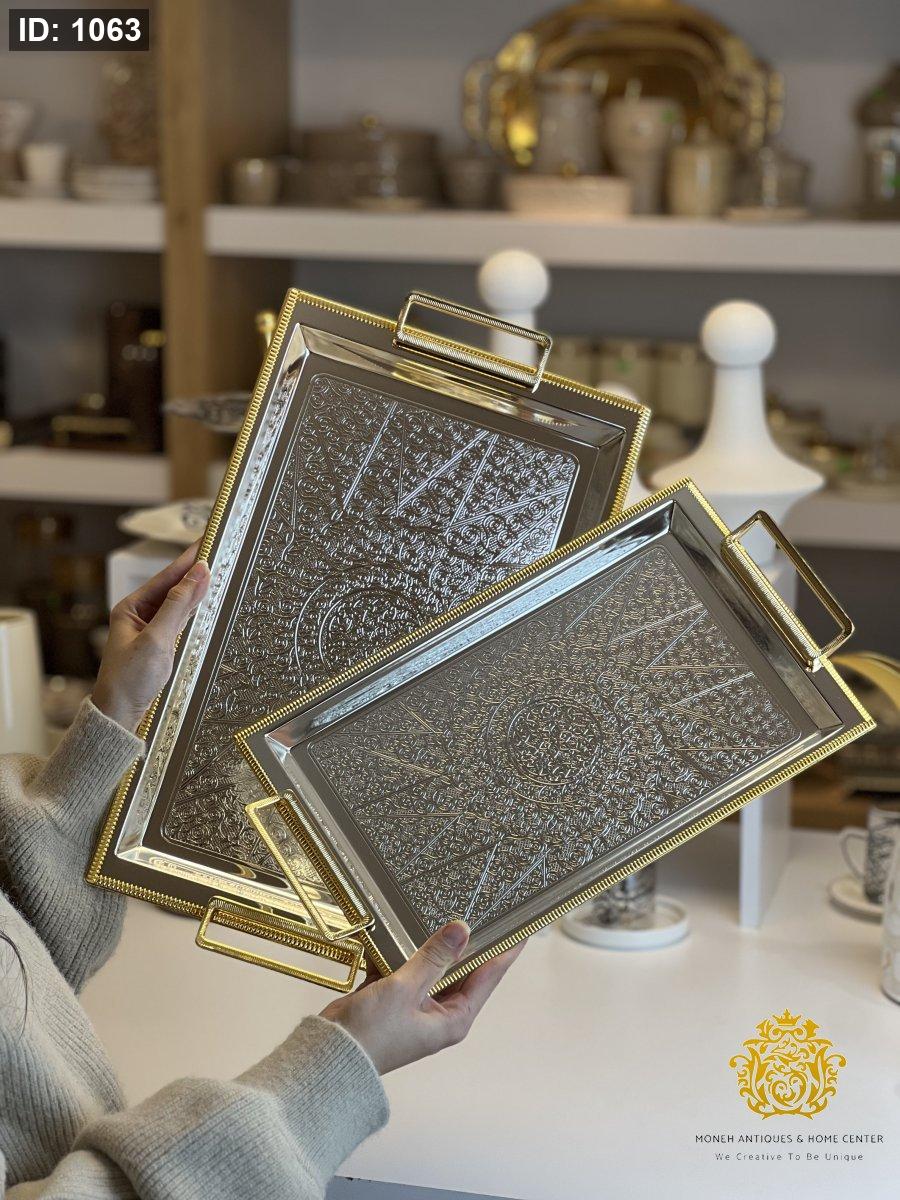 طقم صواني فضي دهبي مستطيل