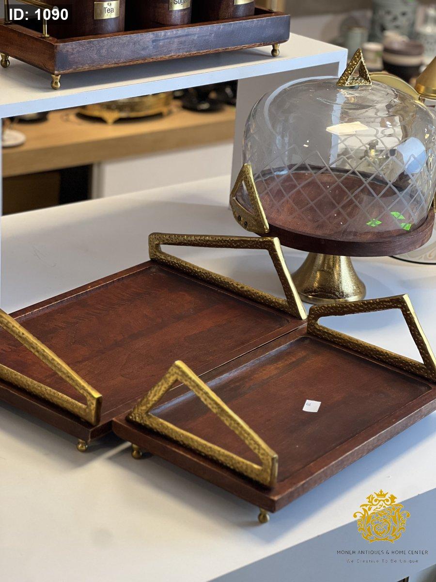 طقم صواني خشب يد معدن