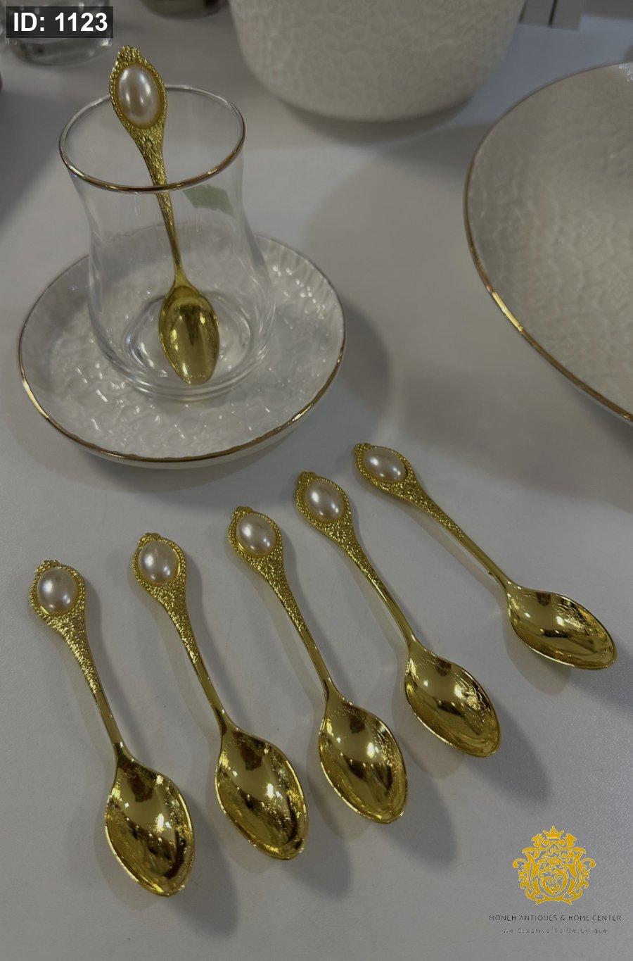 معالق قرفة خرزة بيضاء مدهب عدد 12