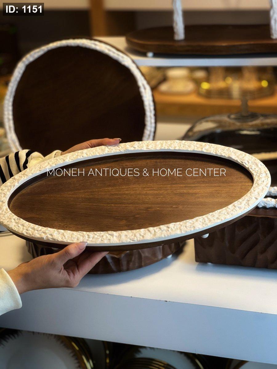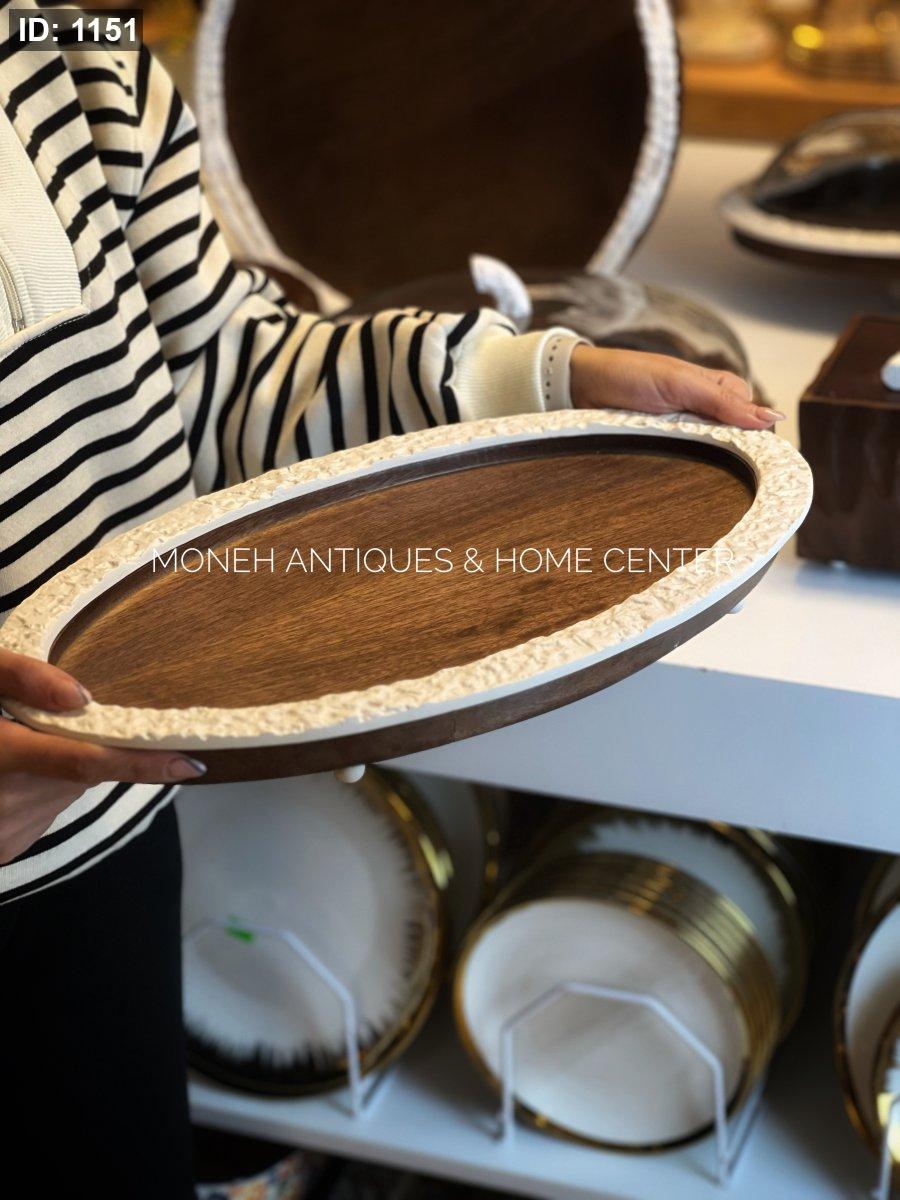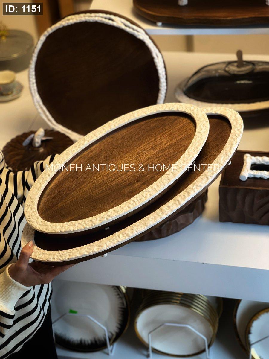 صينية بيضاوي خشبي اطار ابيض هندي