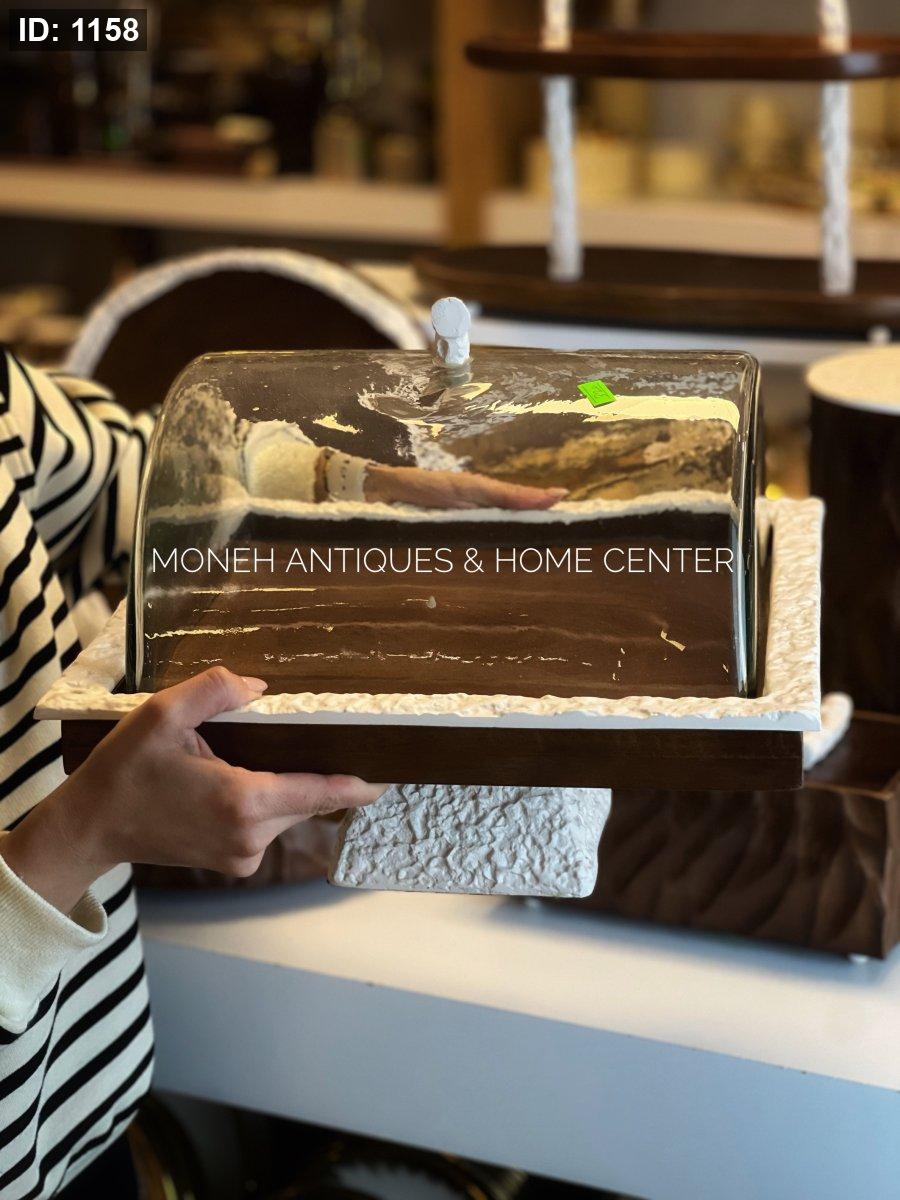 مضيفة برجل مربع مع غطاء زجاج