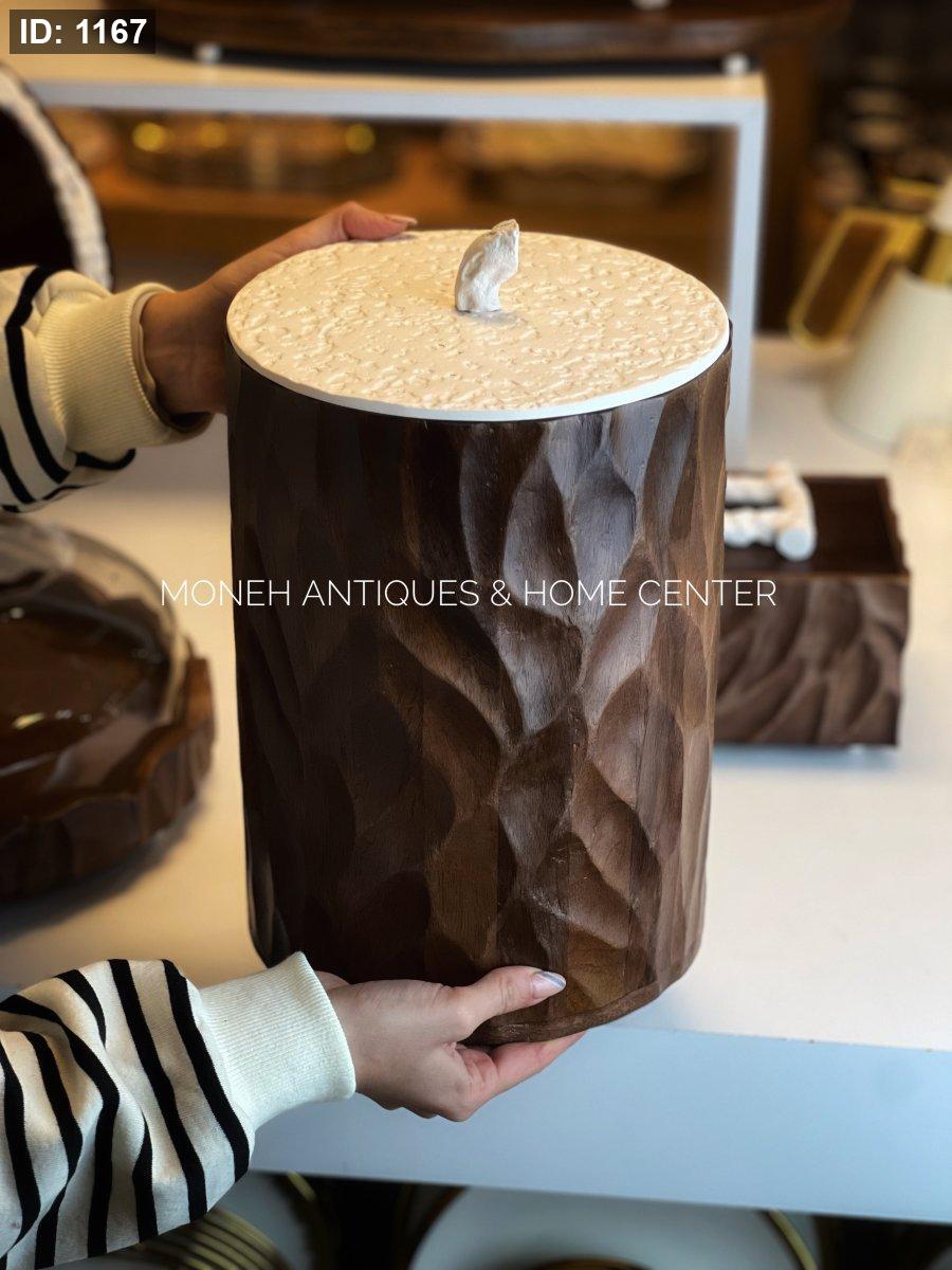 سلة مع غطاء خشب هتدي غطاء معدن ابيض