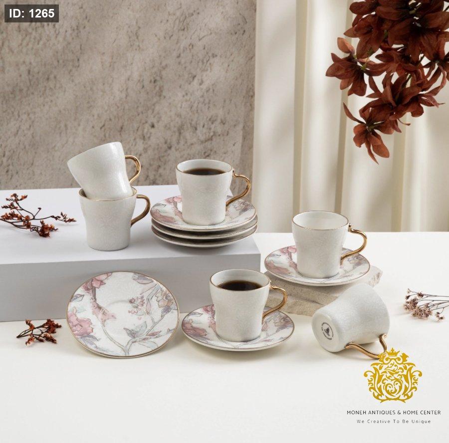 طقم قهوة تركية 12 قطعة من خزامة - أحمر و ذهبي