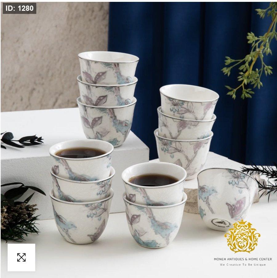 طقم فناجين قهوة عربية 12 قطعة من خزامة - أزرق وفضي
