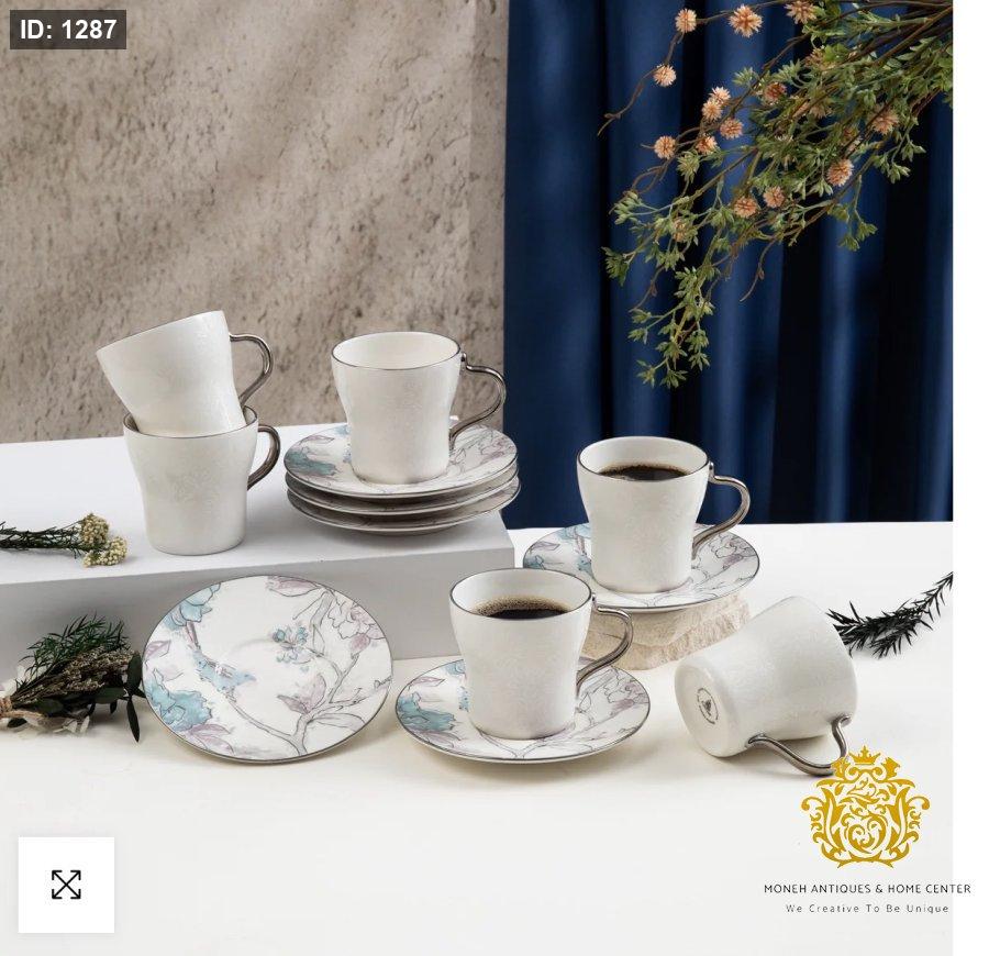 طقم أكواب شاي بورسلان 12 قطعة من خزامة - أزرق وفضي