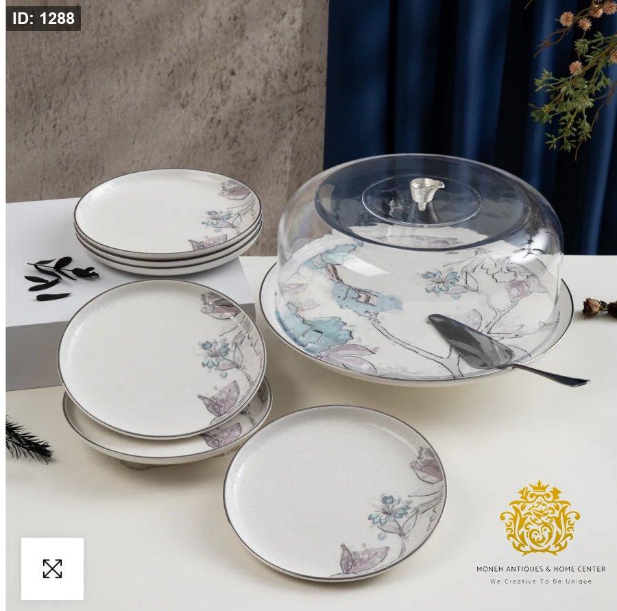 طقم تقديم الكيك 9 قطع من خزامة - أزرق وفضي