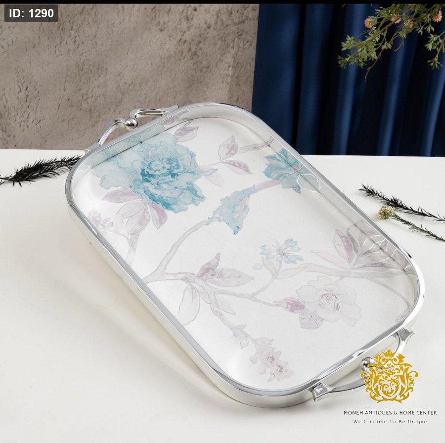 صينية تقديم فاخرة من خزامة - أزرق وفضي