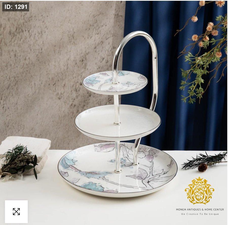 ستاند بورسلان 3 طبقات من خزامة - أزرق وفضي