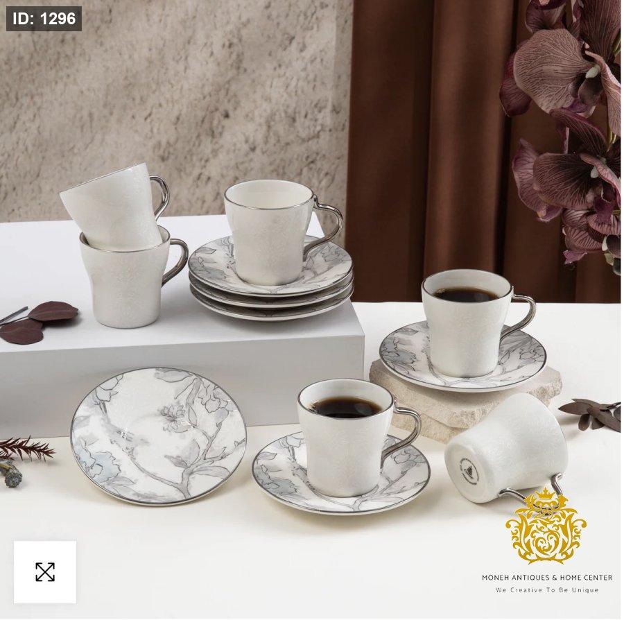 طقم قهوة تركية 12 قطعة 6 فناجين + 6 صحونهم من خزامة - رمادي وفضي