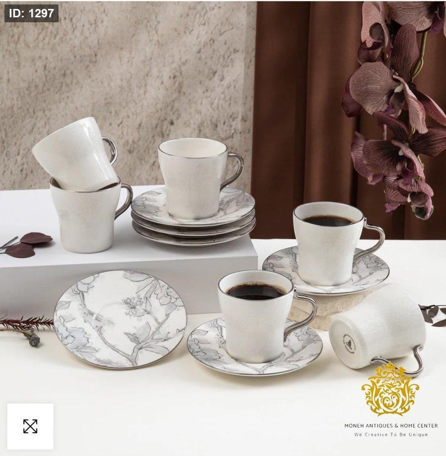 طقم أكواب شاي بورسلان 12 قطعة من خزامة - رمادي وفضي