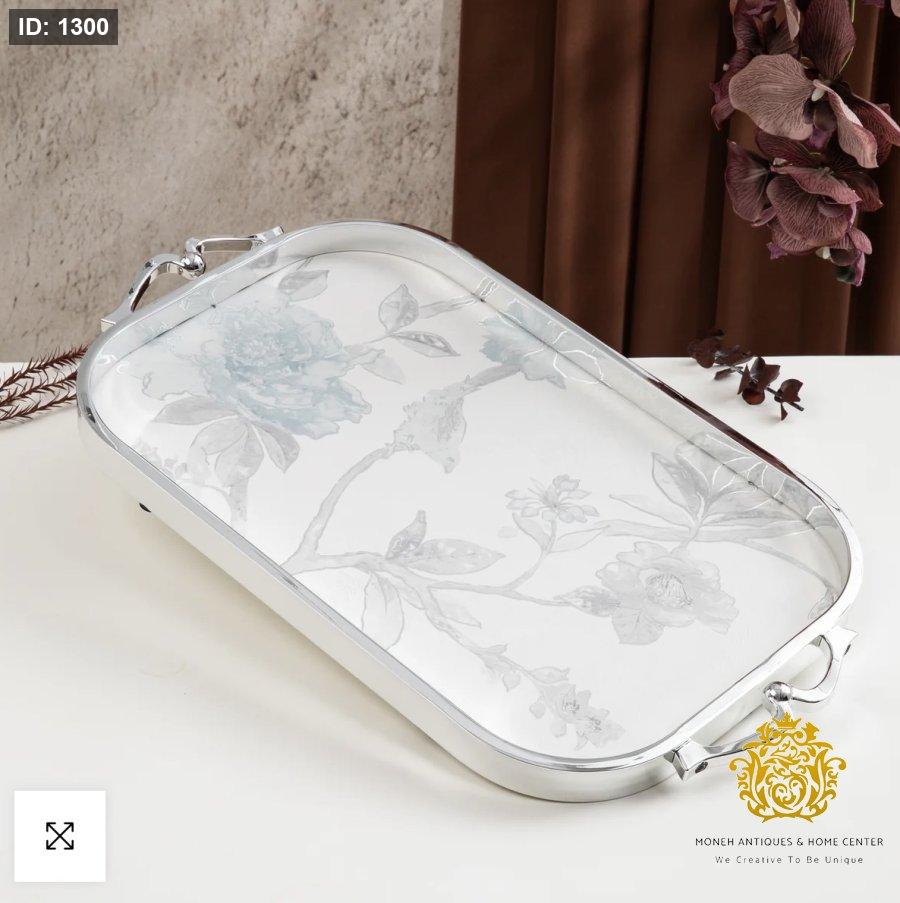 صينية تقديم فاخرة من خزامة - رمادي وفضي