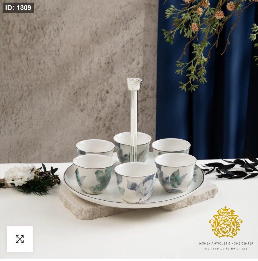 طقم قهوة عربية مع ستاند 7 قطع من ماريسيلا - أزرق وفضي