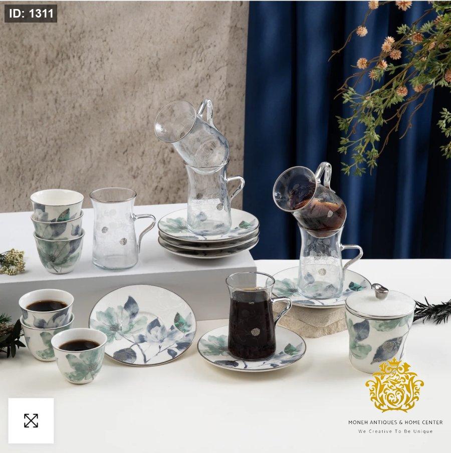 طقم استكانات الشاي والقهوة العربية 19 قطعة من ماريسيلا - رمادي وفضي