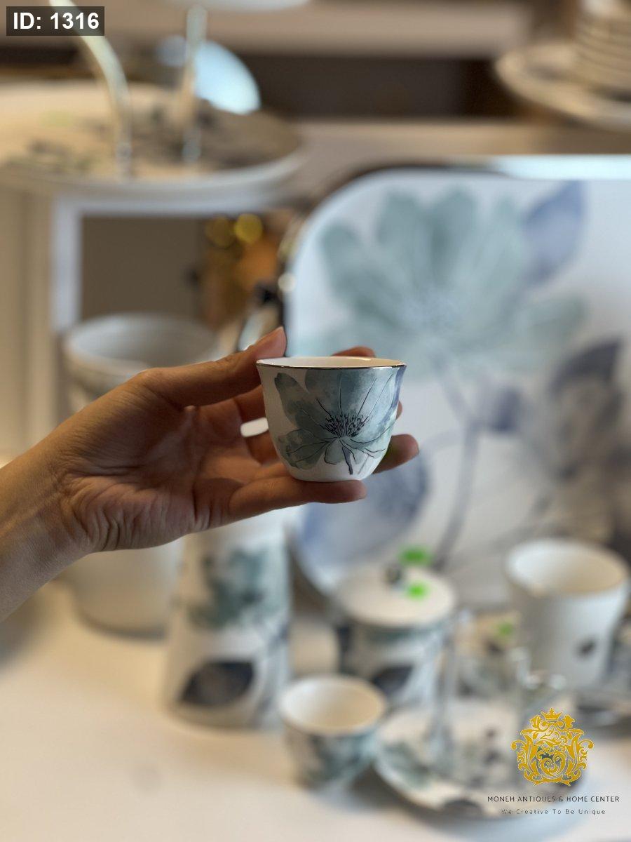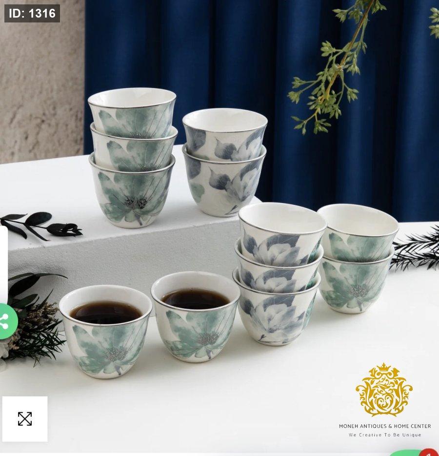 طقم فناجين قهوة عربية 12 قطعة من ماريسيلا - أزرق وفضي
