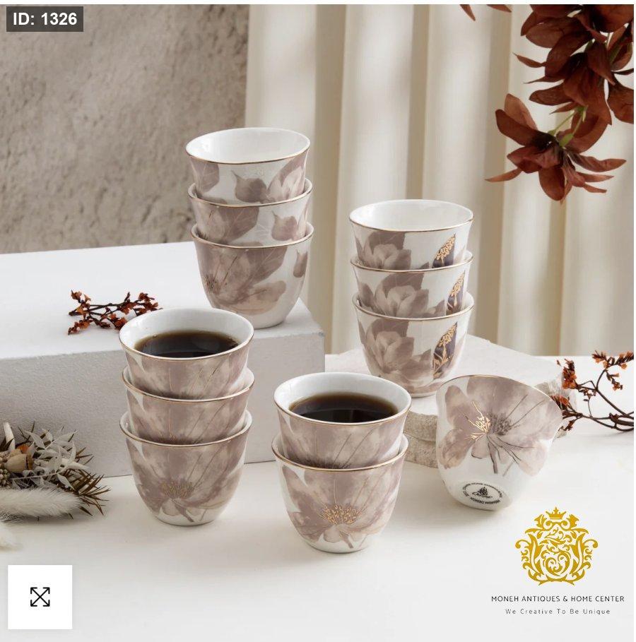 طقم فناجين قهوة عربية 12 قطعة من ماريسيلا - أحمر و ذهبي