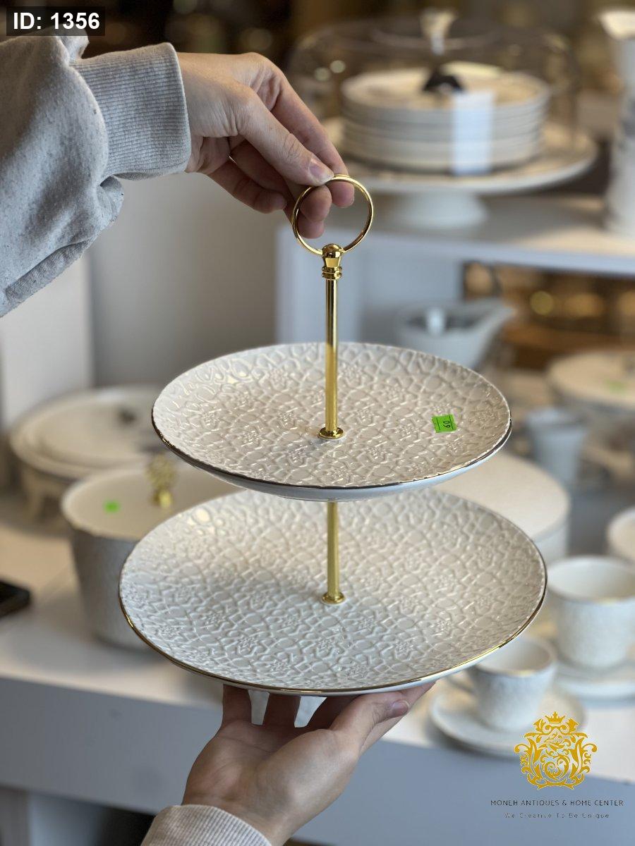حمالة شكولاته طبقتين مزخرف اندلسي ابيض