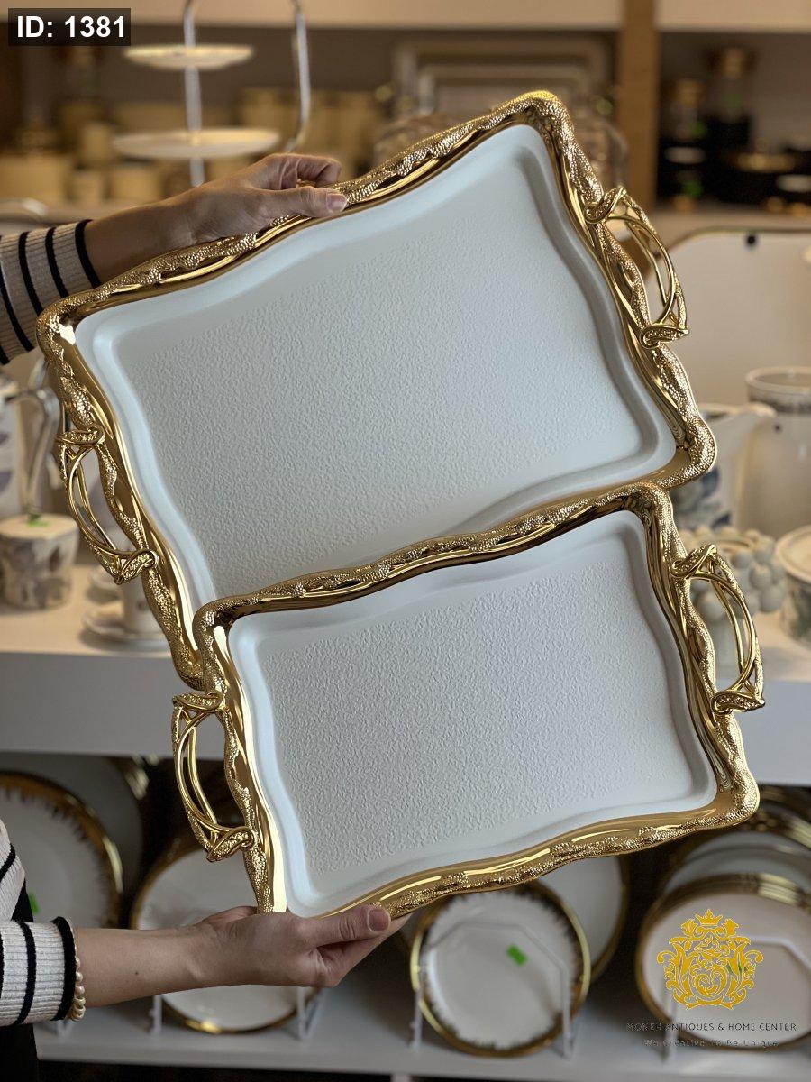 طقم صواني قطعتين دهبي ابيض