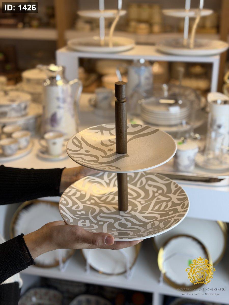 مضيفة طبقتين بورسلان ملون بامبو