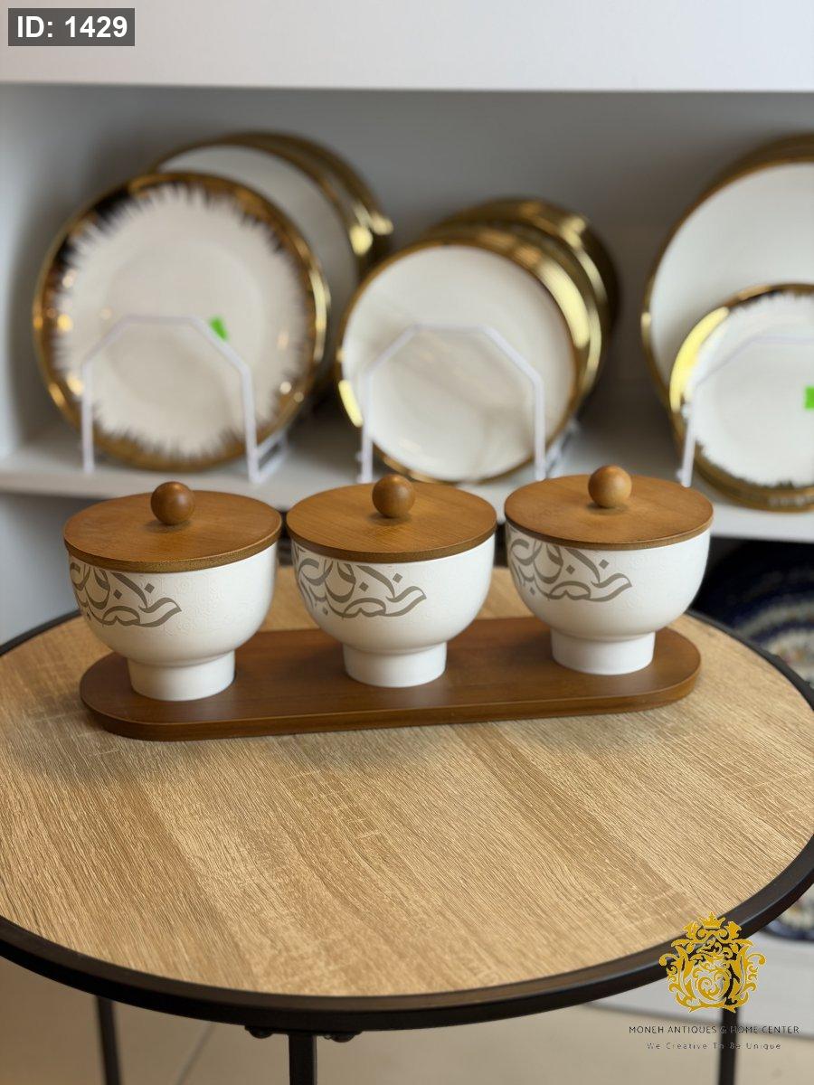 طقم مضايف ثلاثيات مع قاعدة بورسلان ملون بامبو