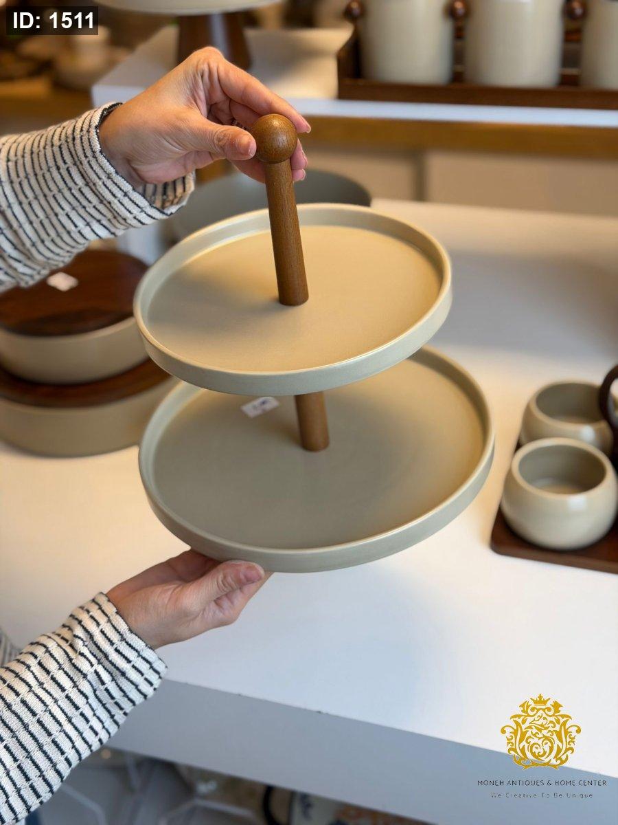 مضيفة طبقتين بورسلان وبامبو