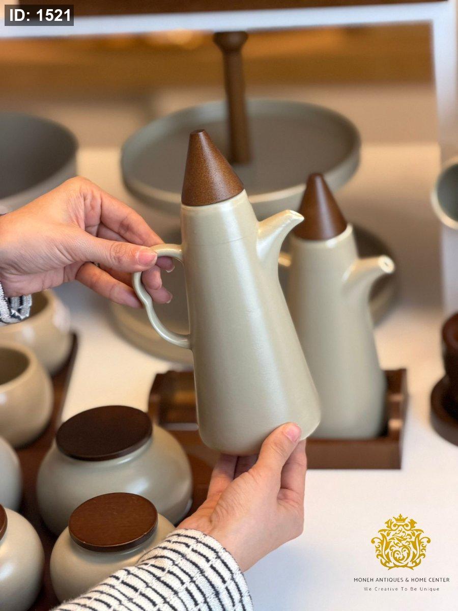 طقم مزيتة عدد 2 وقاعدة بورسلان وخشب