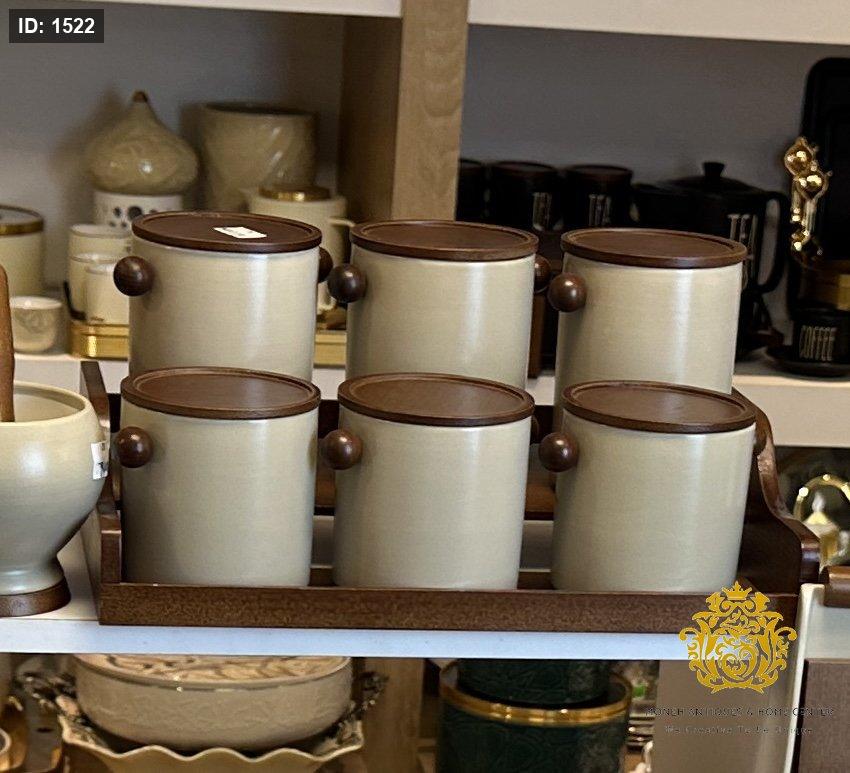 طقم سكريات حجم كبير طبقتين بورسلان وخشب