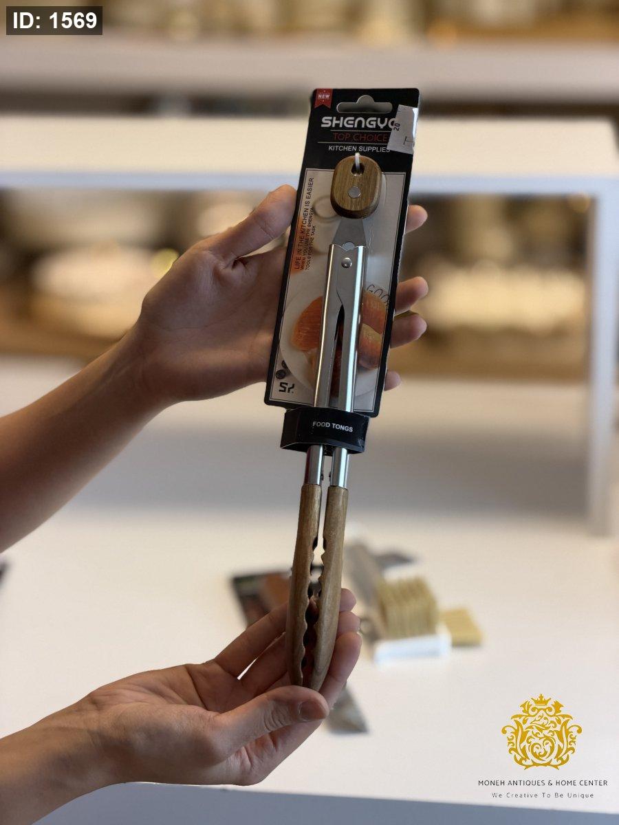 ملقط طعام خشب مع ستانلس