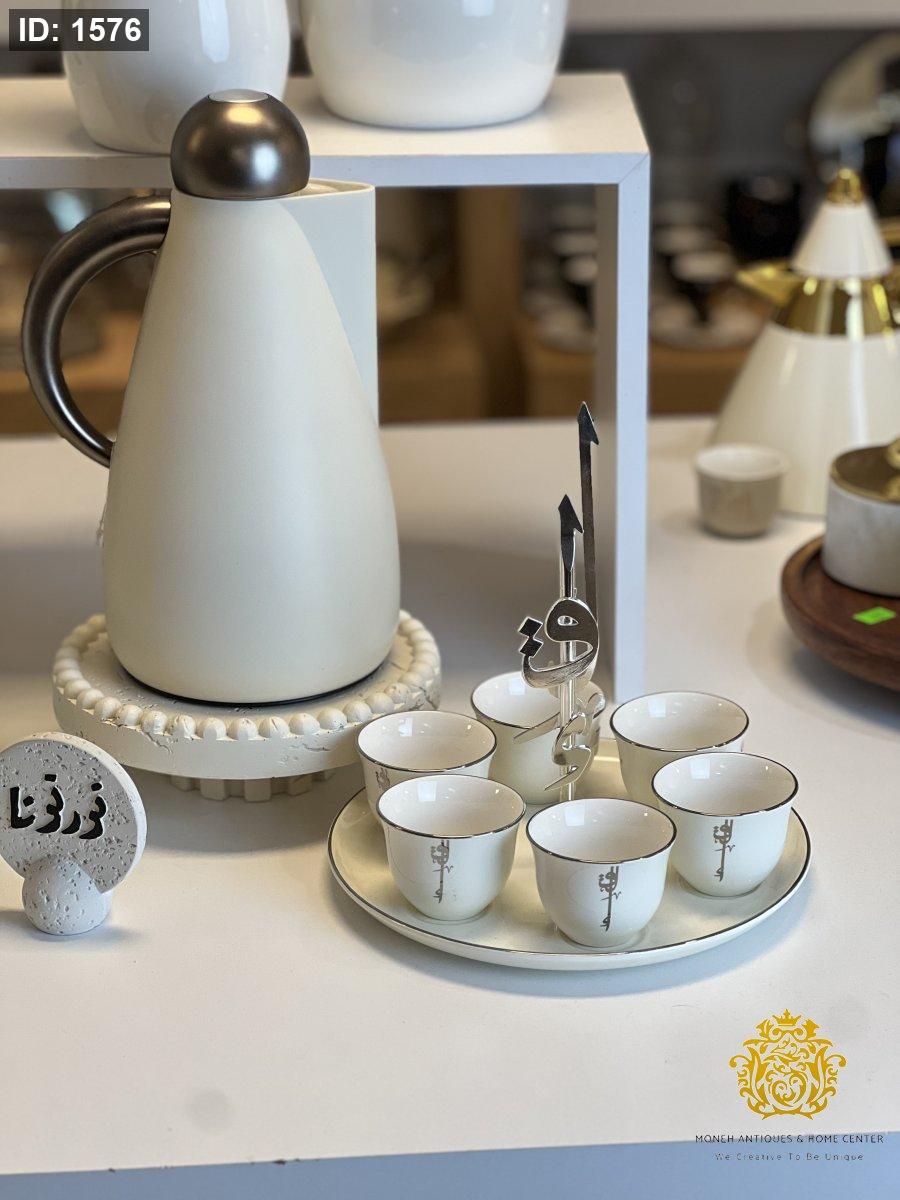 طقم قهوة عربية مع ستاند 7 قطع من ماريسيلا - رمادي وفضي