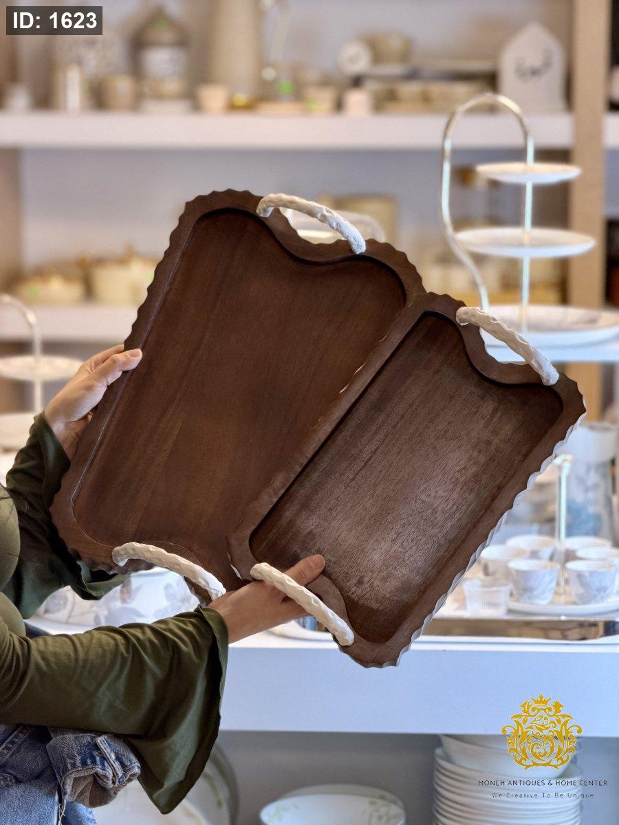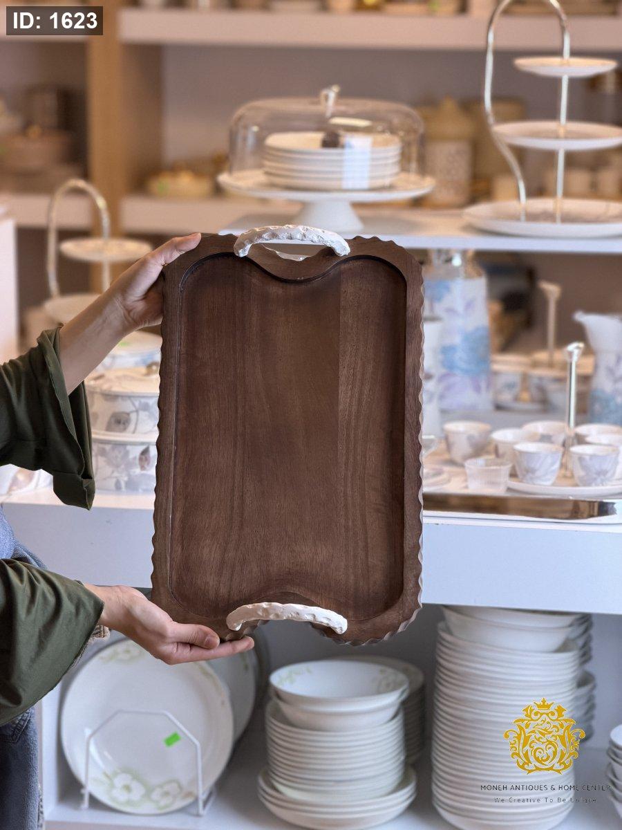 صنية مستطيل خشب يد عالي ابيض