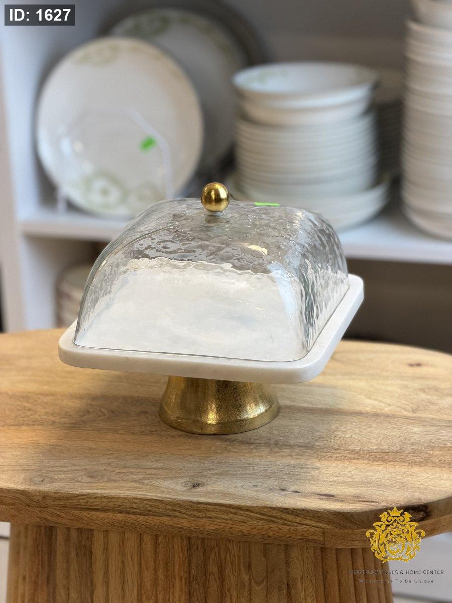 مضيفة مربع رخام مع غطاء زجاج