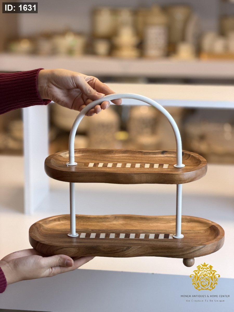 ستاند ضيافة طبقتين خشب هندي مخطط