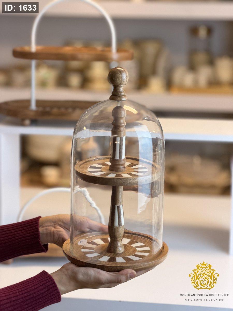 مضيفة طبقتين مع غطاء زجاج