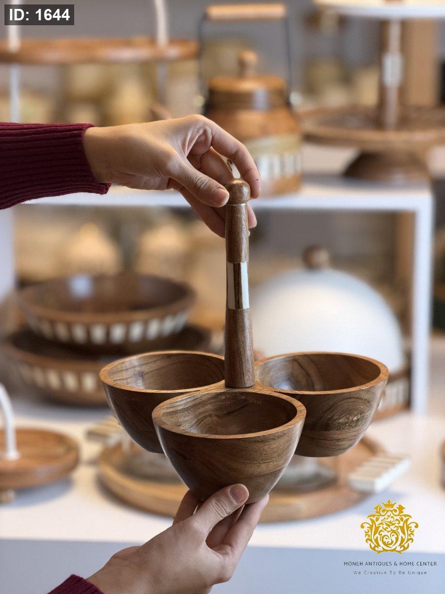 مضيفة مكسرات ثلاثيه بيد خشب هندي