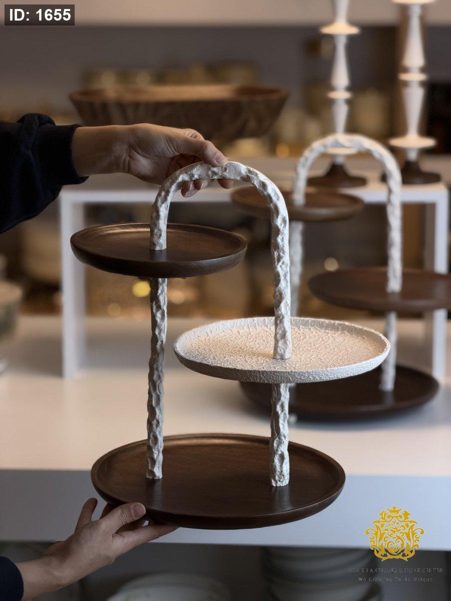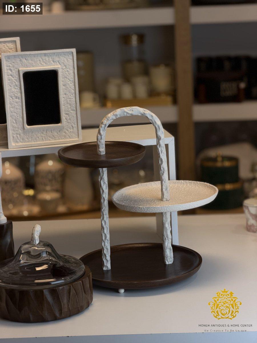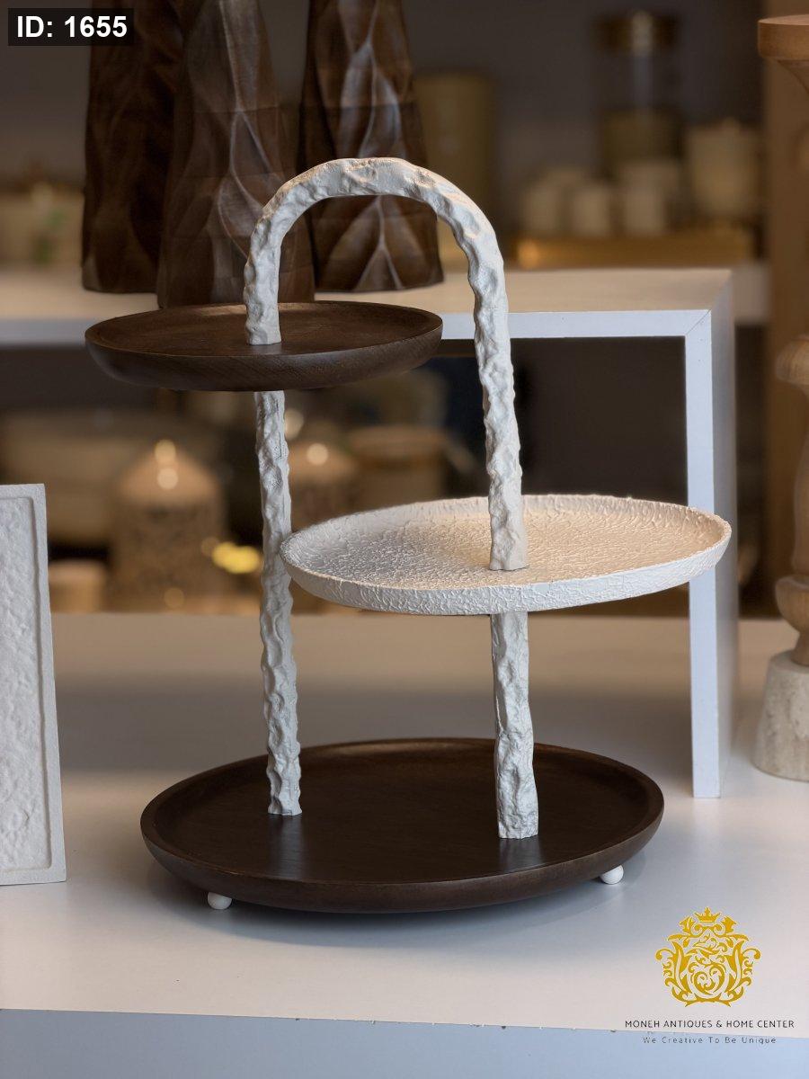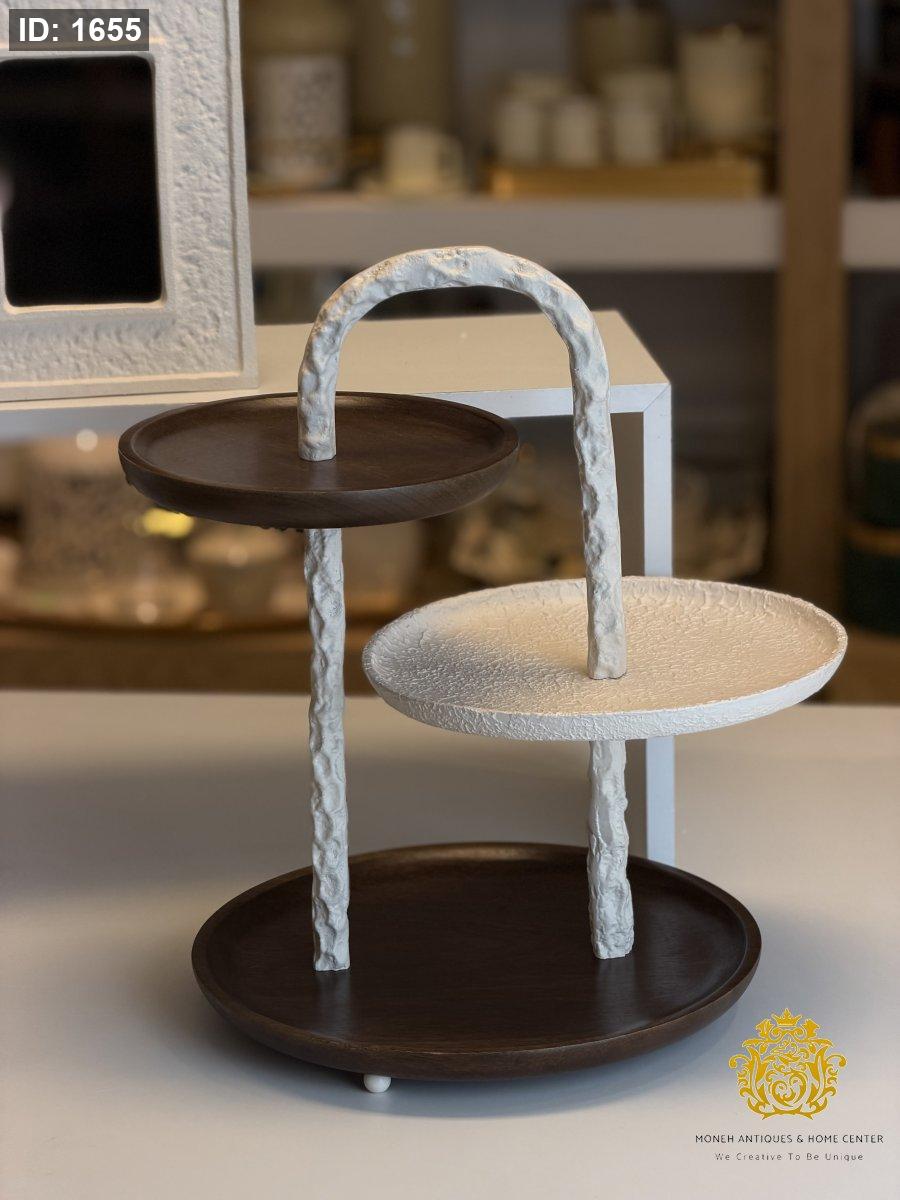حمالة تقديم ستاند ٣ طبقات خشبي وسط ابيض