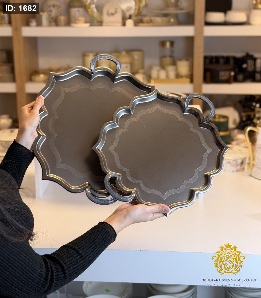 طقم صواني قطعتين ورده مات فضي
