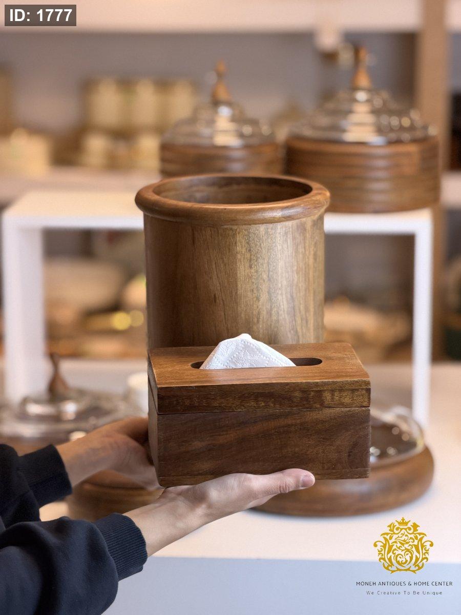 طقم سلة مع محارم خشب هندي