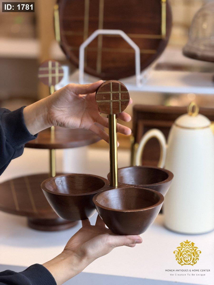 مضيفة مكسرات وشكولاته ثلاثيه خشب هندي