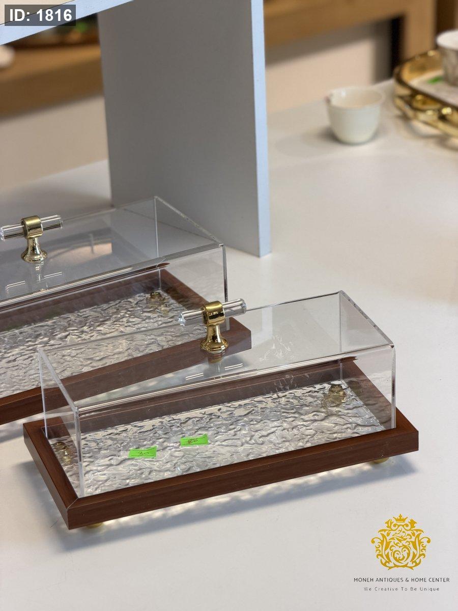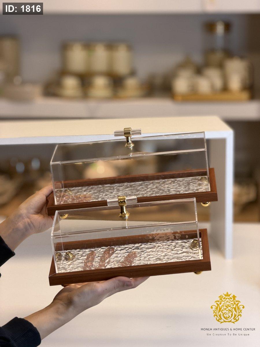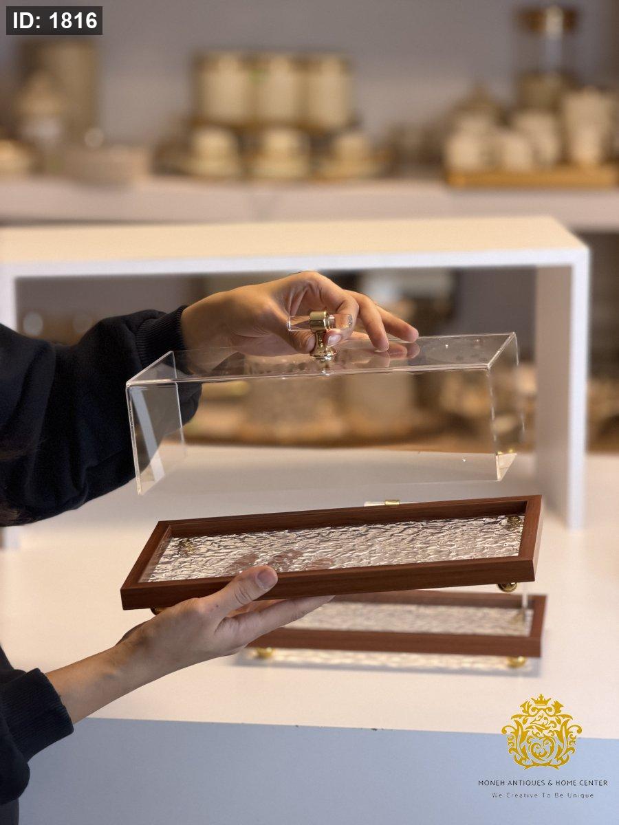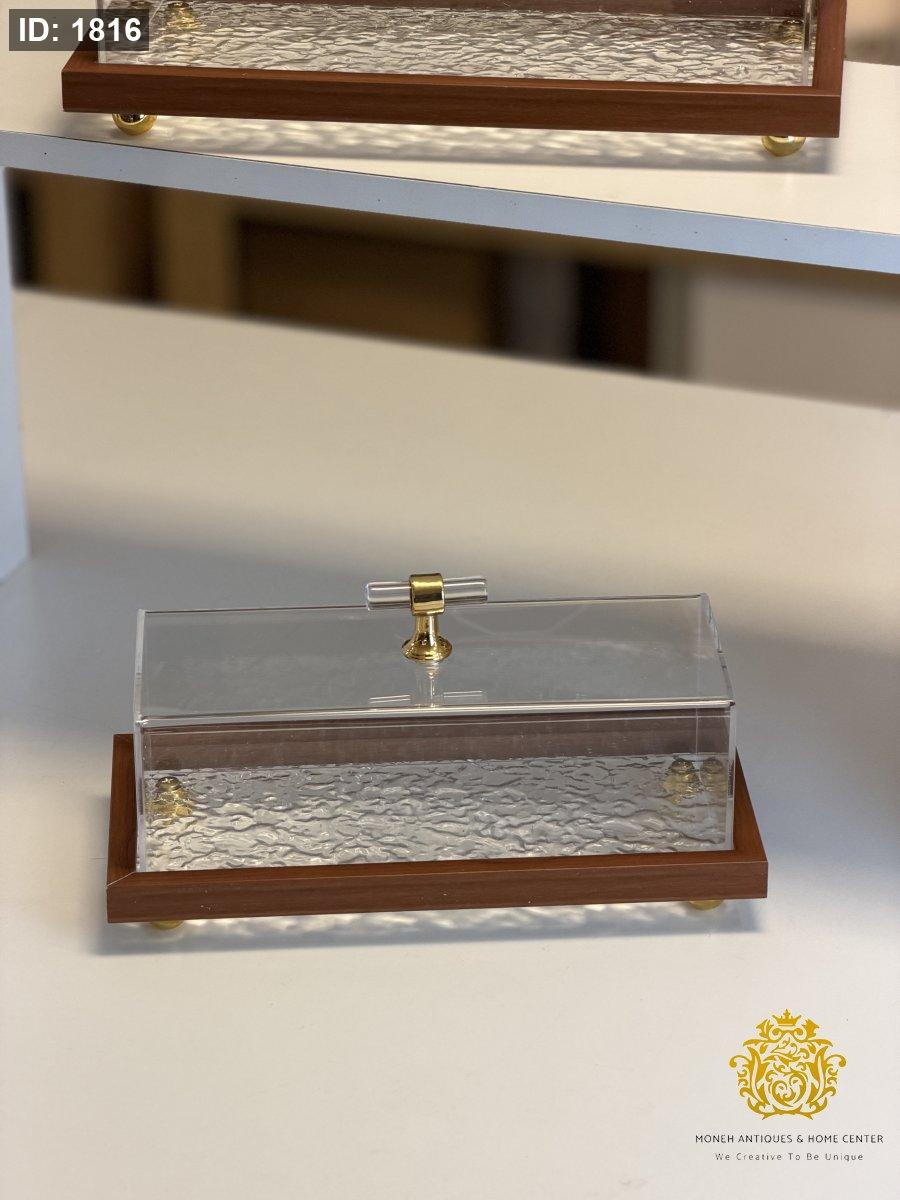 مضيفة اكراليك مستطيل اطار خشبي فاتح