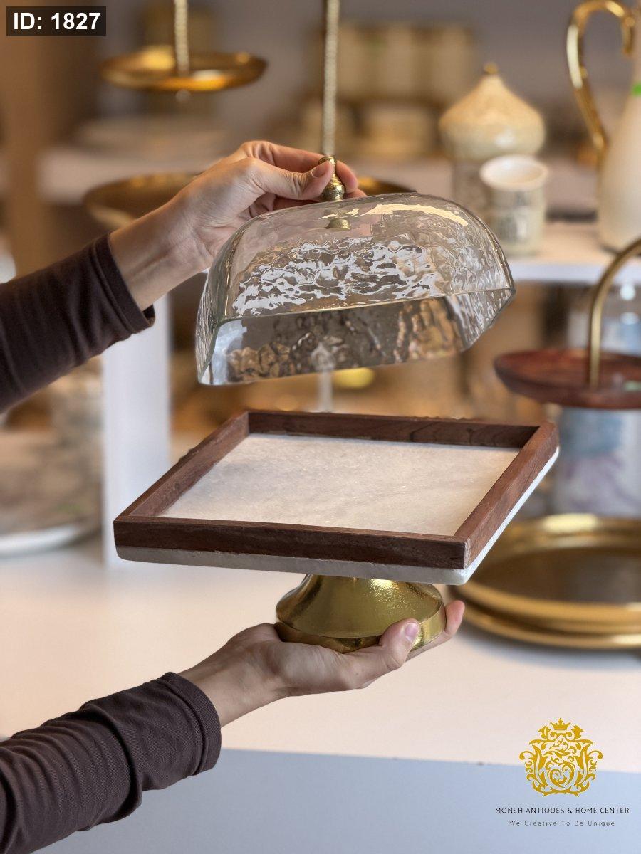 مضيفة رخام مربع اطار خشب