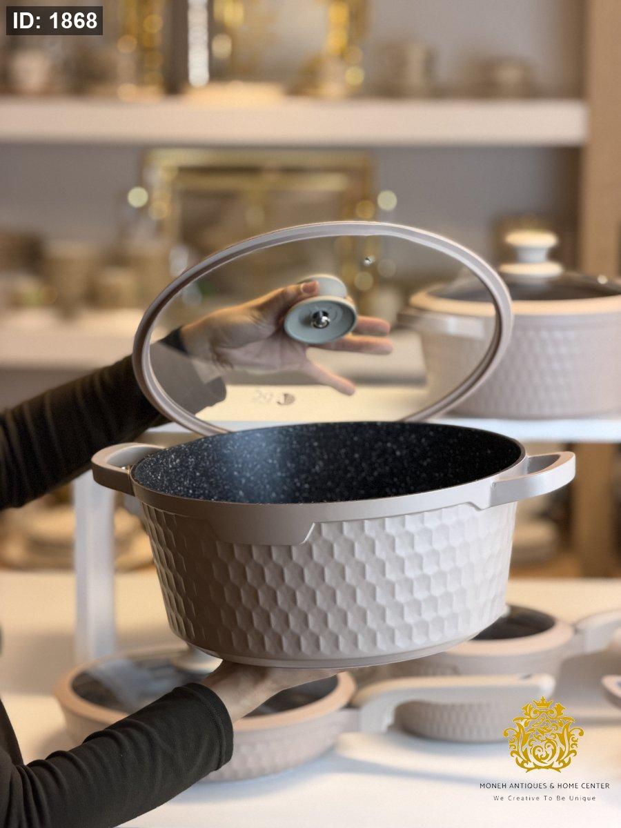 •غطاء زجاجي مقاوم للحرارة يسمح بمراقبة الطعام دون الحاجة لرفع الغطاء والحفاظ على الحرارة داخل القدر.