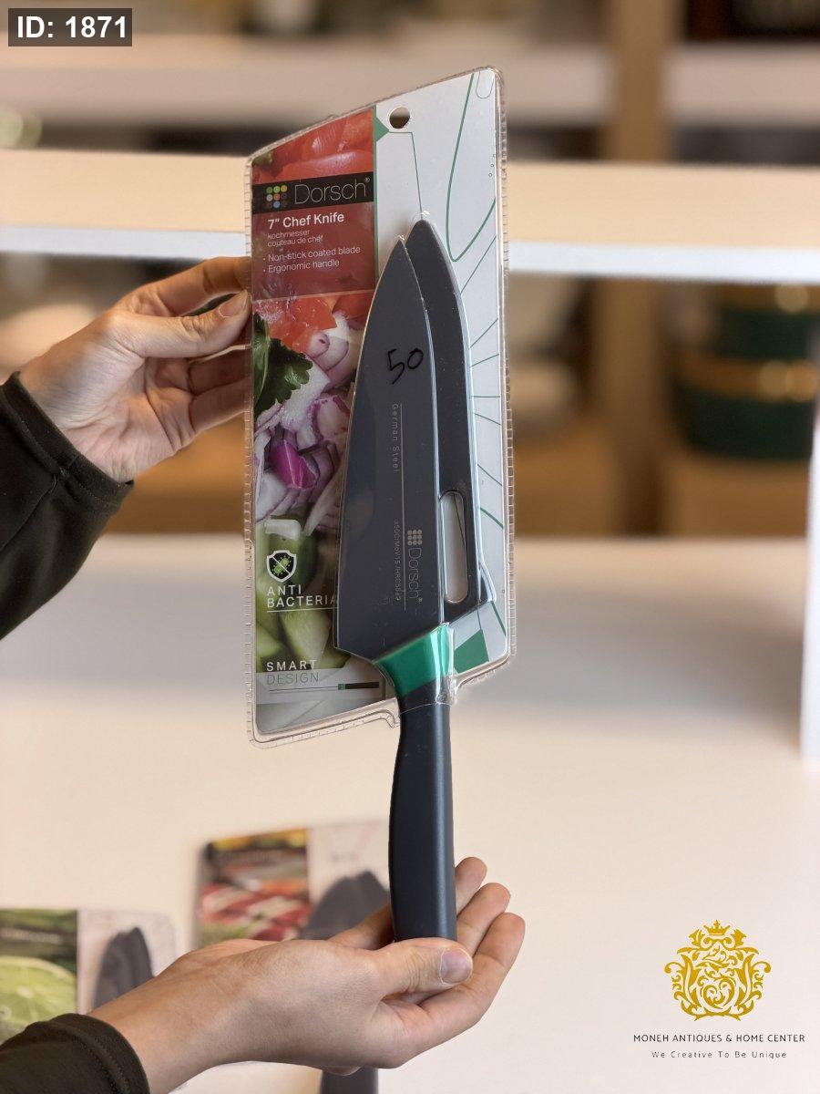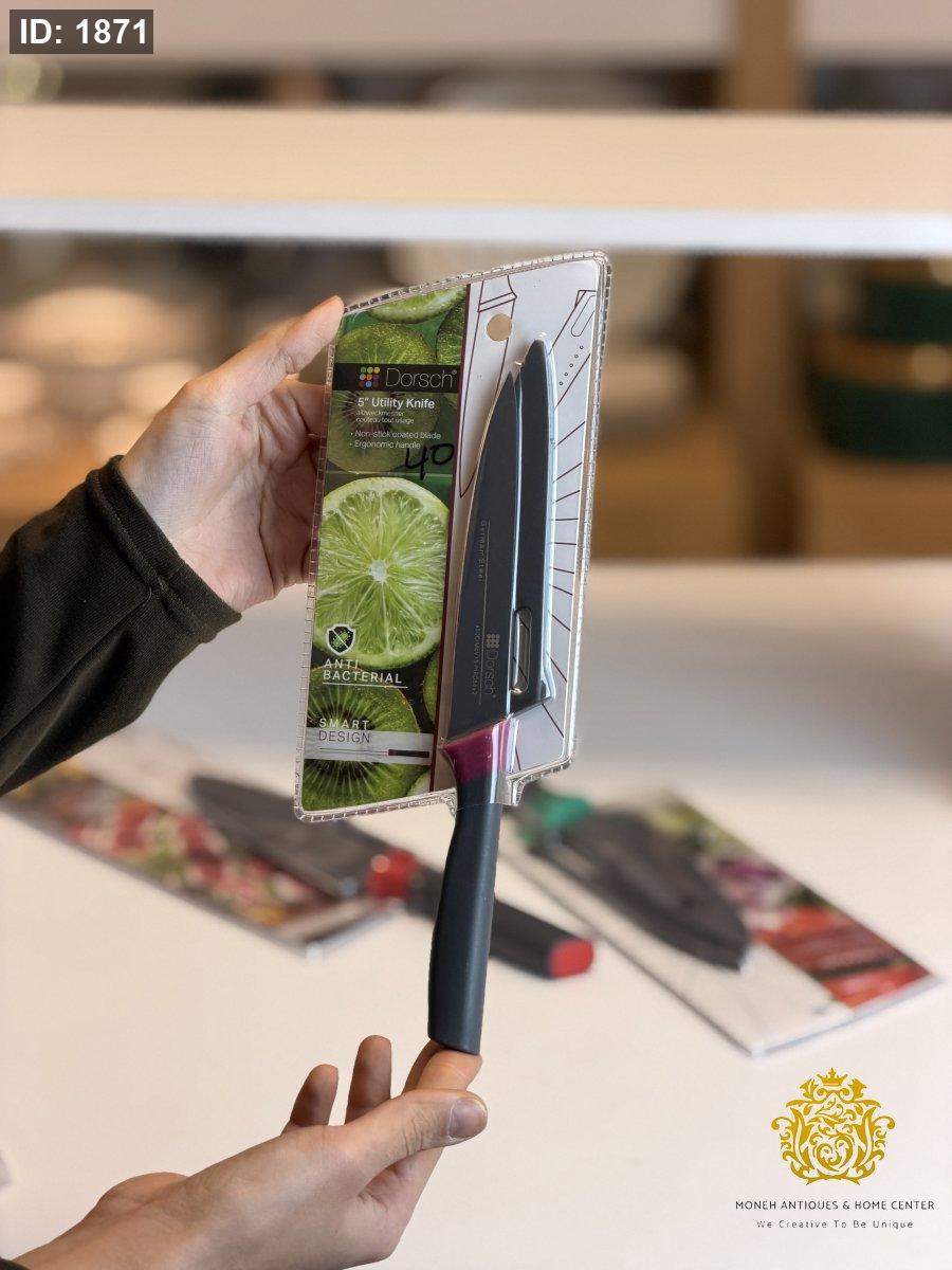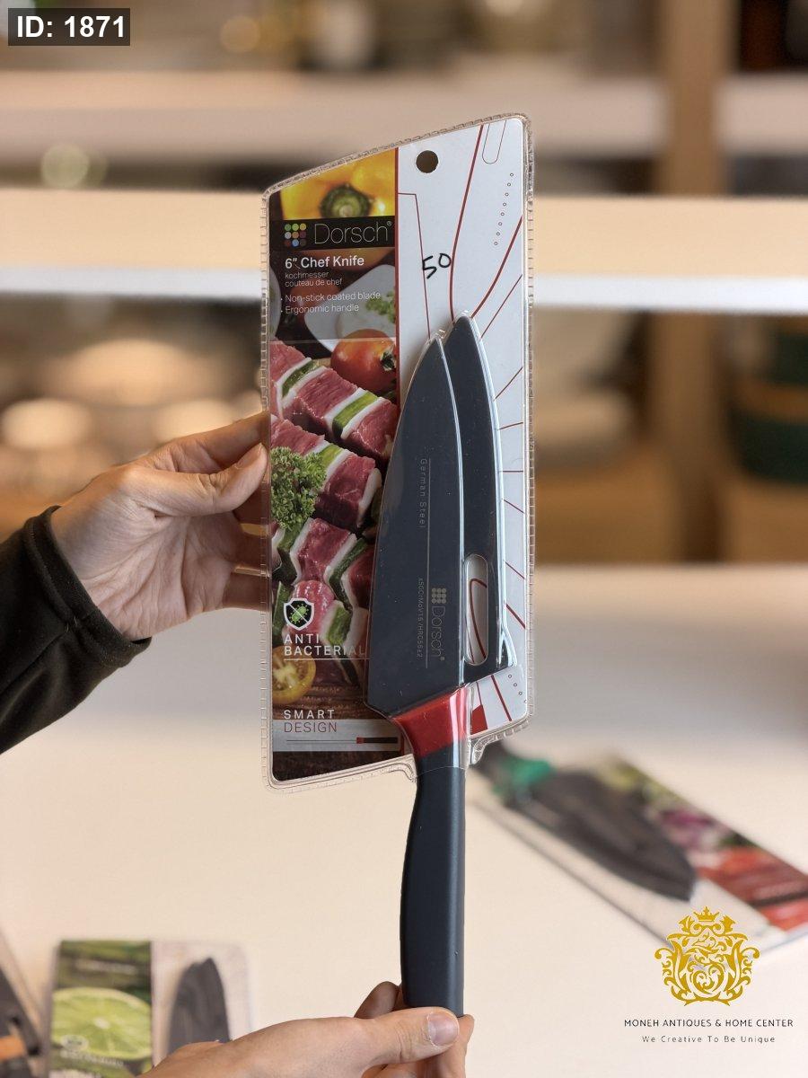 ميزات المنتج: نصل حاد للغاية مصنوع من الفولاذ المقاوم للصدأ عالي الكربون. طلاء مانع للالتصاق آمن للطعام، يسهل تنظيفه. تصميم فريد للمقبض يرفع النصل عن سطح العمل. غمد واقٍ يوفر تخزينًا آمنًا.