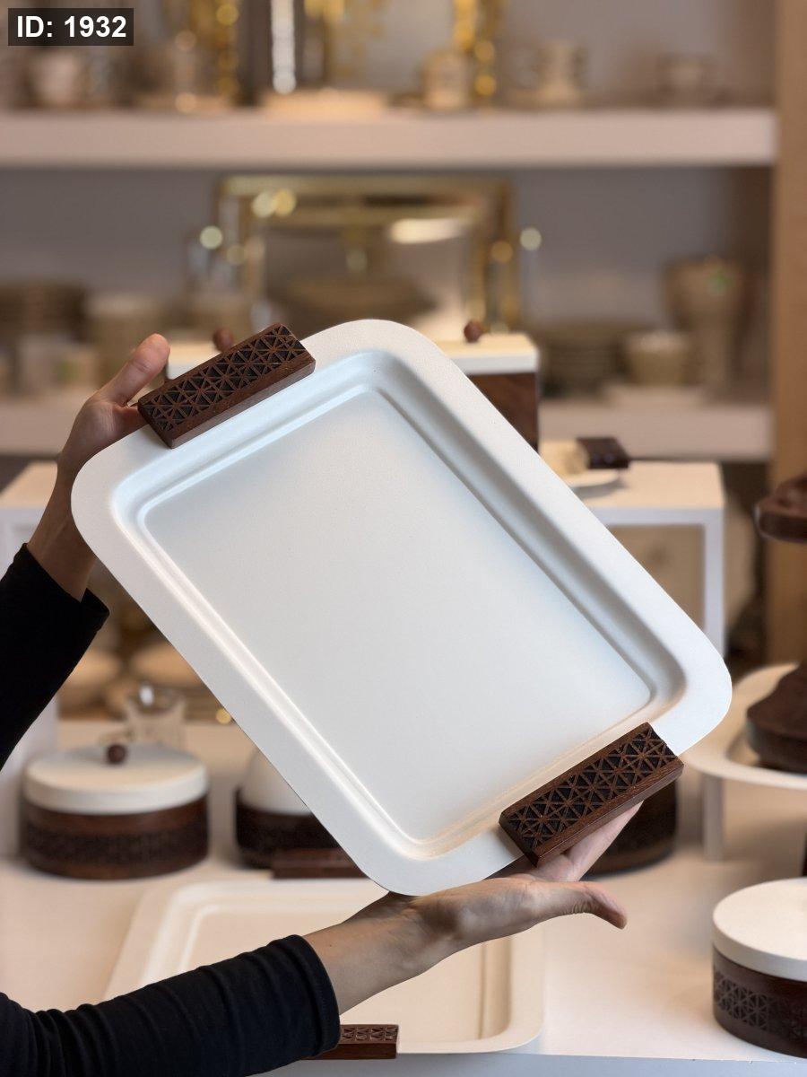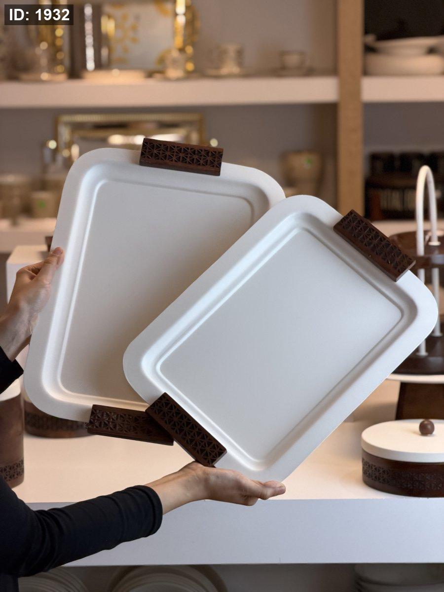 طقم صواني مستطيل يد خشب