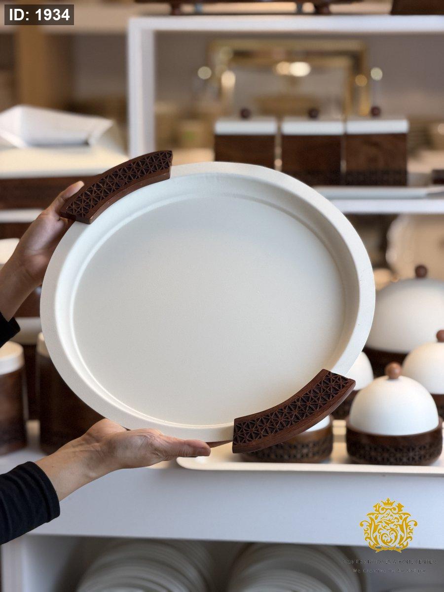 صنية مدور يد خشب نقشة اندلسي