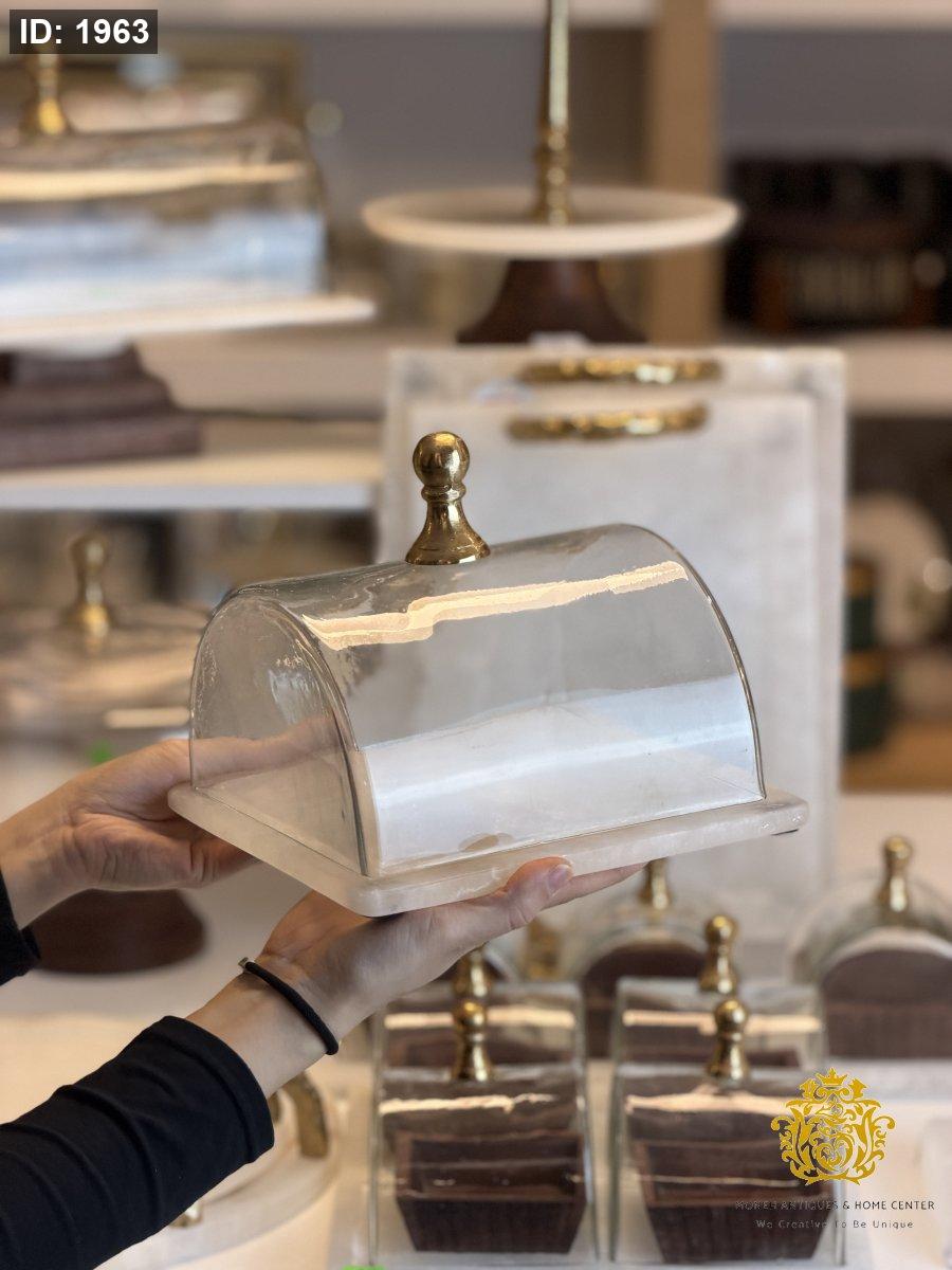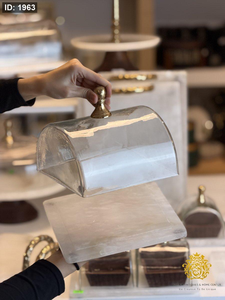 •غطاء زجاج شفاف بمقبض ذهبي