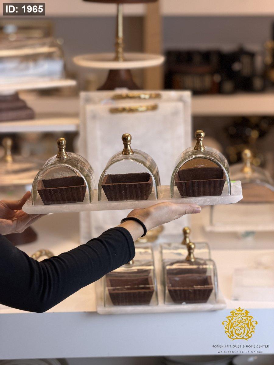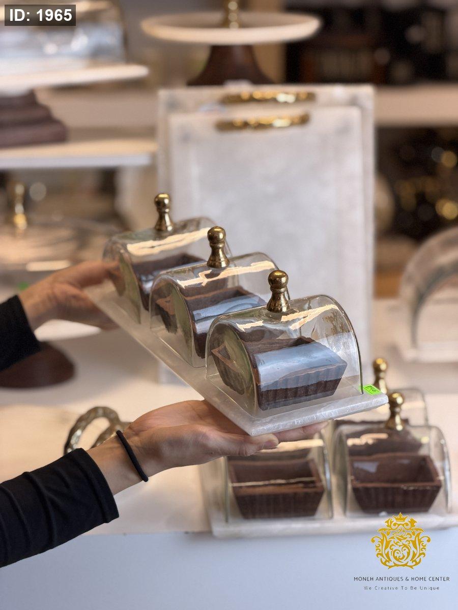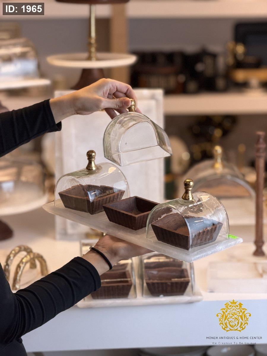 تتكوّن القطعة من ثلاث علب تقديم منفصلة بداخل أغطية شفافة تحافظ على المحتوى وتبرز جمال التقديم في نفس الوقت، مما يجعلها مثالية لتقديم التمور، الشوكولاتة أو المكسرات بأسلوب منظم وأنيق.