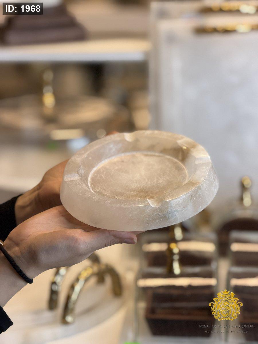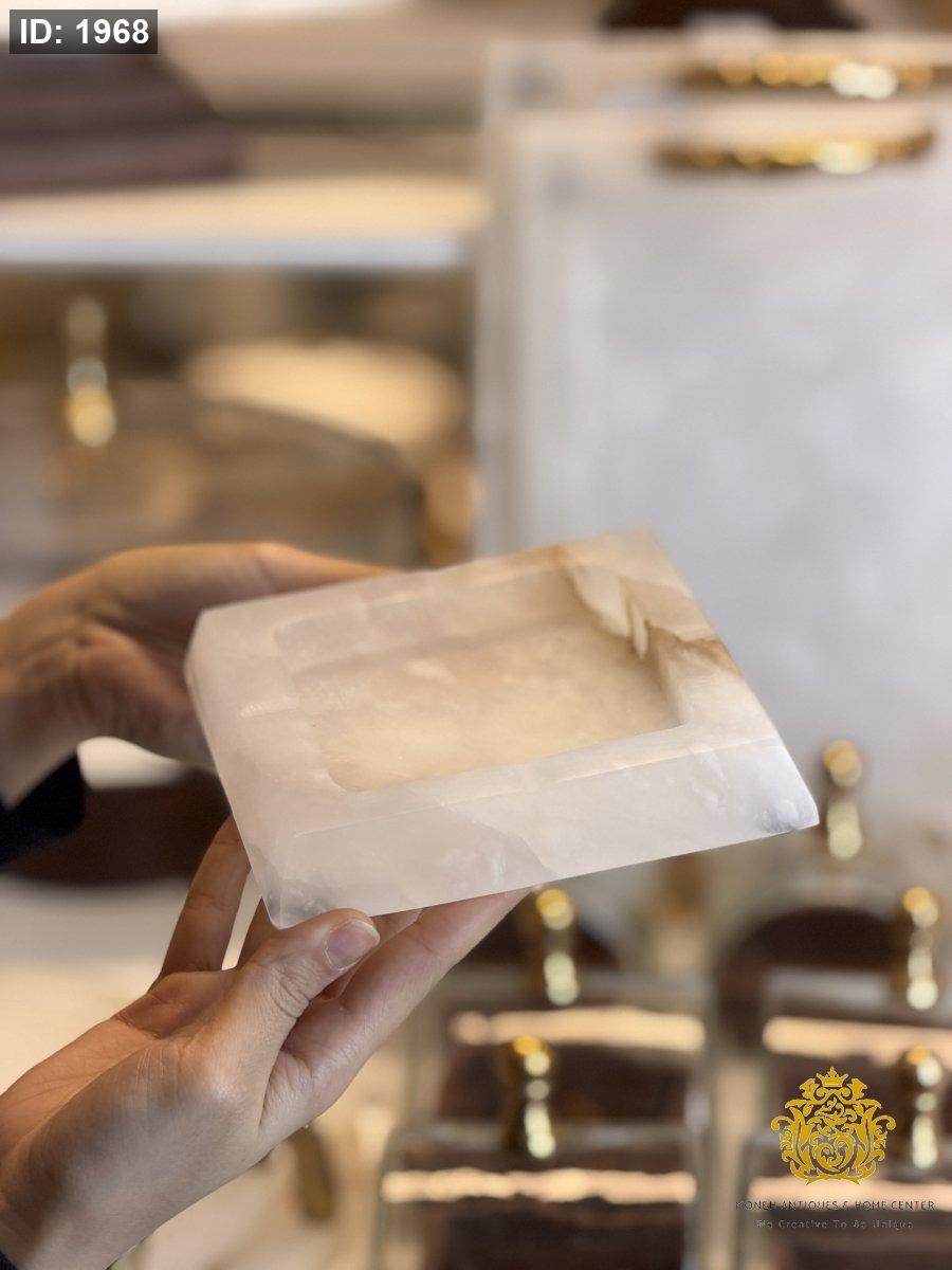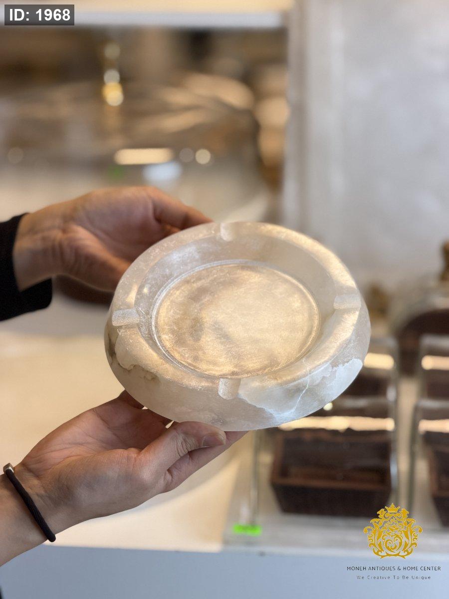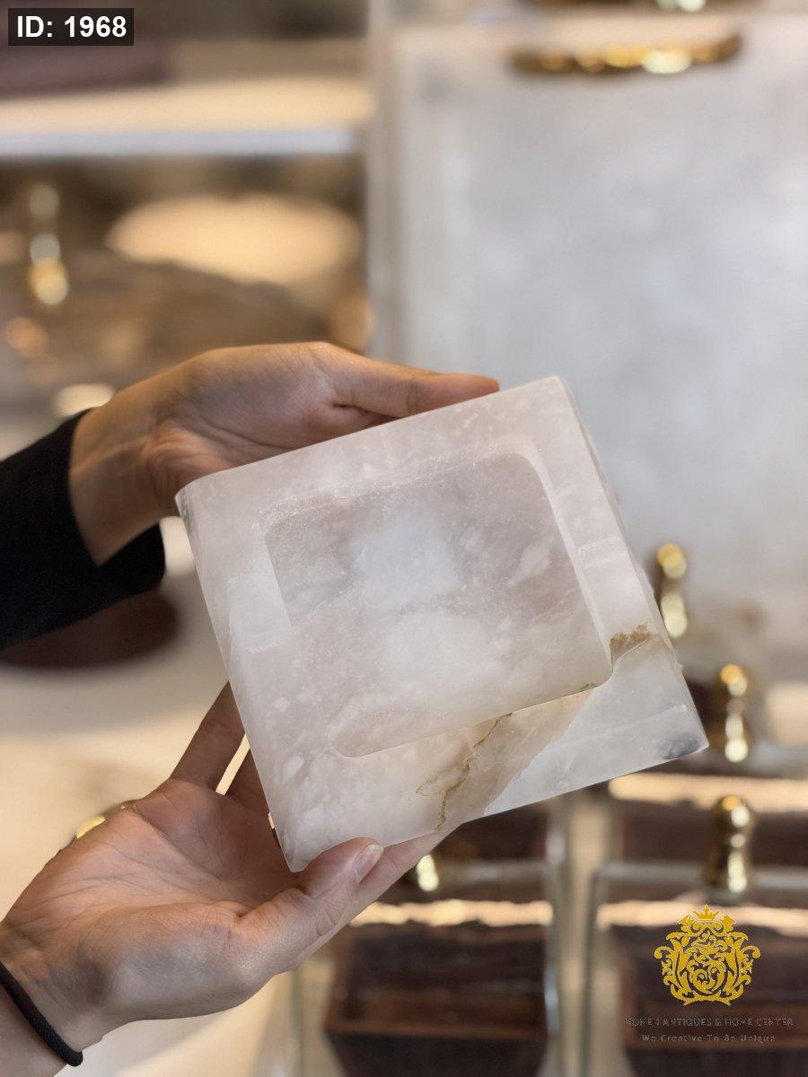 منفضة سجائر بتصميم أنيق مصنوعة من رخام الألباستر الطبيعي، تجمع بين العملية والفخامة لتكون إضافة راقية لطاولات الضيافة أو الجلسات الداخلية والخارجية.