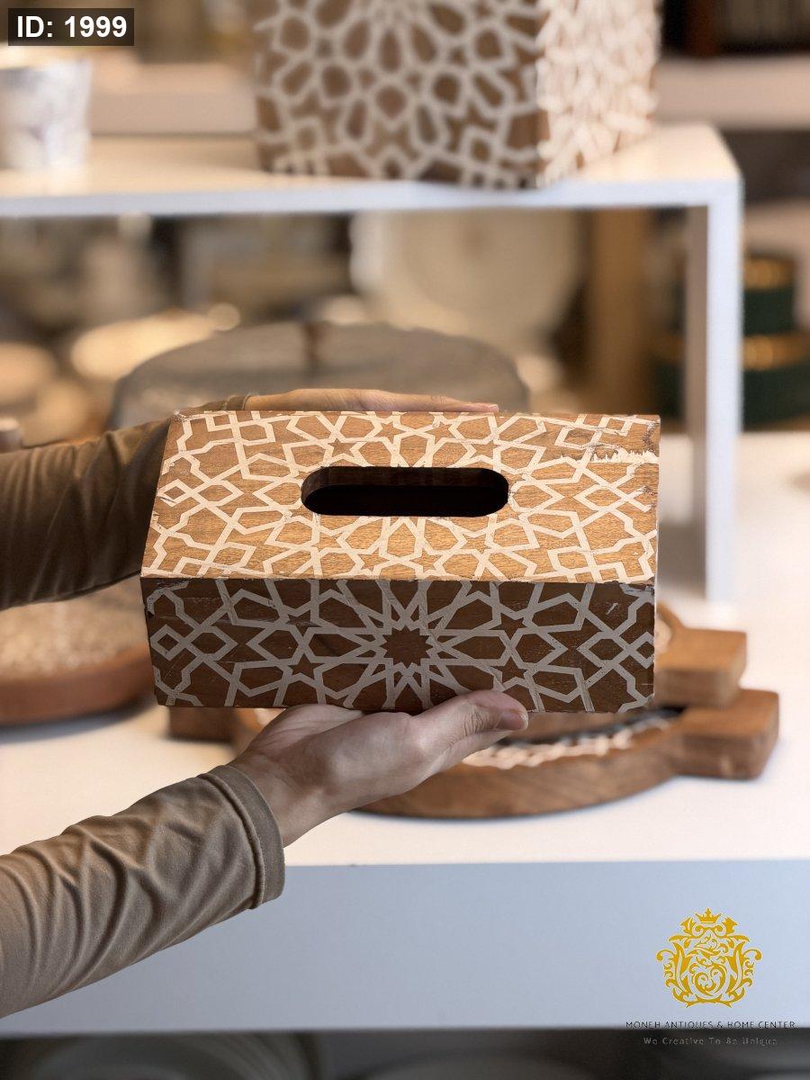 علبة محارم خشب مزخرف ابيض