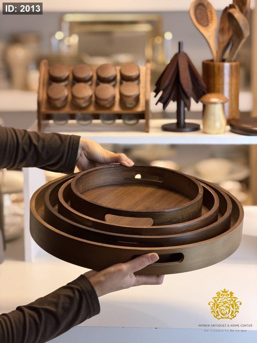 طقم صواني خشب مدور /٤ غامق